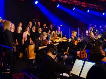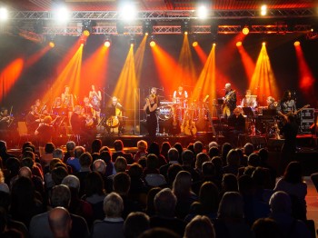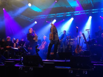 40 Musiker 1 Event. Martin Stenger (Schlagzeuger) hat ein Projekt auf die Beine gestellt, das mit Band, Bläsersatz, Streichorchester, Chor und vielen Solosängern die Halle in Burgthann zum beben brachte. Wir hatten gemeinsam so viel Spaß auf der Bühne, dass wir sicher ein Wiederholungskonzert geben werden. Die ausverkaufte Halle feierte mit uns. (Saxophon – Matthias Lange)